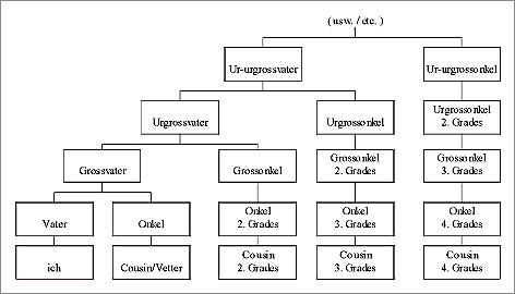 Das Bild zeigt die Bezeichnung der nahen Verwandschaftsverhältnisse
